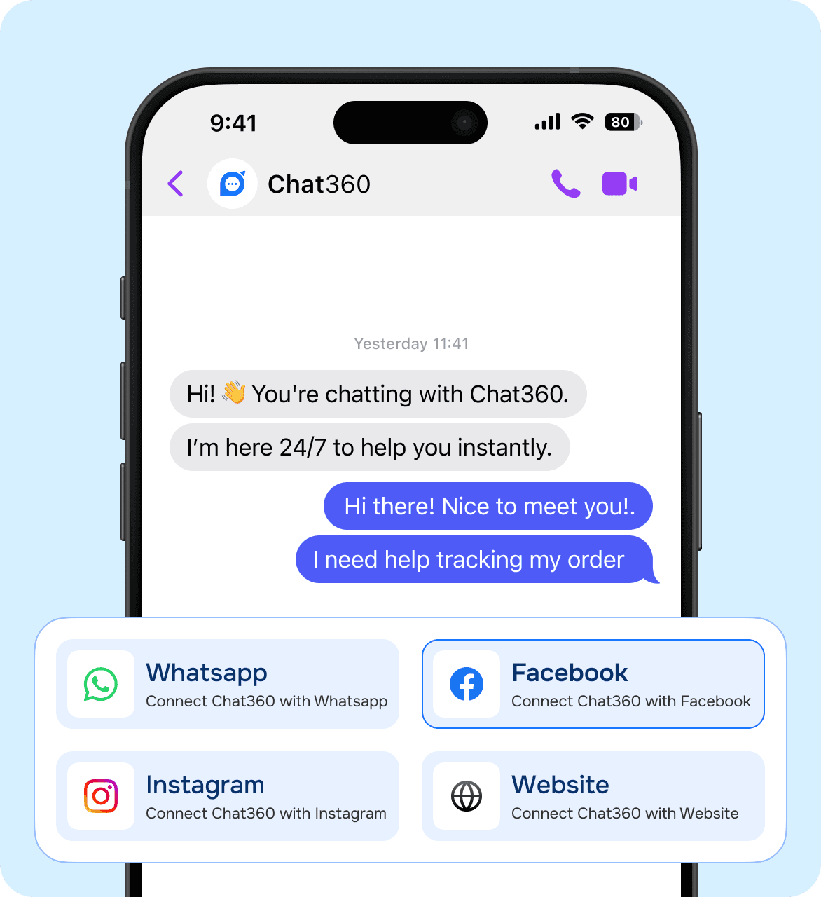 Leverage Facebook Messenger’s high engagement rates to qualify leads, recommend products, and recover abandoned interest. Chat360’s AI Agents guide users from chat to checkout—accelerating your sales cycle.