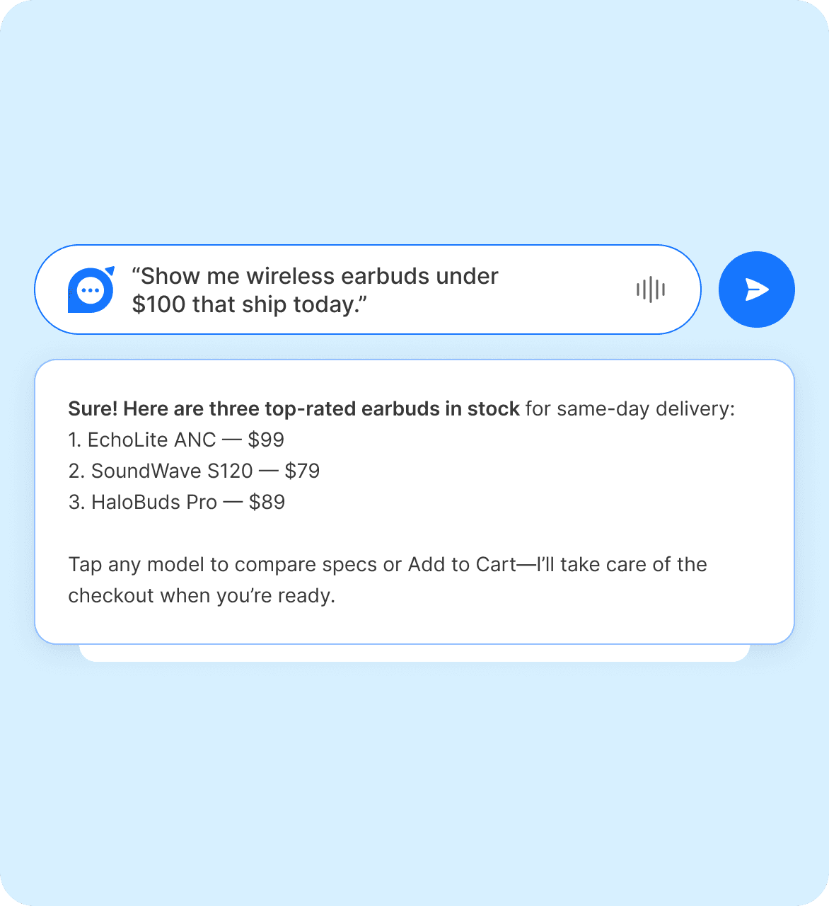 Our AI agents don’t stop at conversations. They execute tasks, make decisions, and drive outcomes across your customer journey.